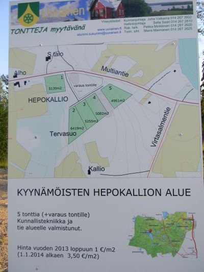 Hepokallion tontit edelleen myynnissä. Kunnallistekniikka on ja myös valokuituvalmius! Pidä kiirettä, enää kolme jäljellä. Kysy lisää kunnan rakennustarkastajalta.