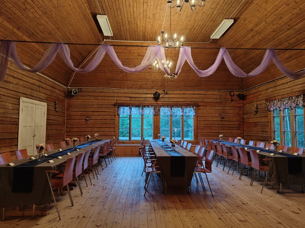 Juhlahintaan sisältyy myös astiasto noin 100 henkilölle ja valkoiset pöytäliinat.